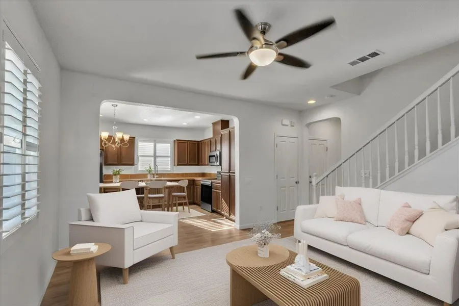 *4.99% int rate avail*Not the biggest backyard but 3 parks nearby plus GREAT neighborhood and Stress free maintenance ! Just built in 2010 the AC and roof won't need replacing for a while. It's a 3bedroom 2.5 bath but possible 4 bedroom, the second garage presents an exciting opportunity it can easily be converted into a second master suite downstairs since the adjoining wall backs up to the existing half bath. Making a 4th bedroom possible. Retreat to your serene upstairs primary master suite, complete with a private balcony, spa-like ensuite bath, and a spacious walk-in closet. From here, you can even enjoy views of the city's 4th of July fireworks show. Outside, enjoy the low-maintenance backyard with a covered patio, just installed turf, and concrete perfect for relaxing or hosting gatherings. Additional features include two separate garages and driveways for added convenience and st...