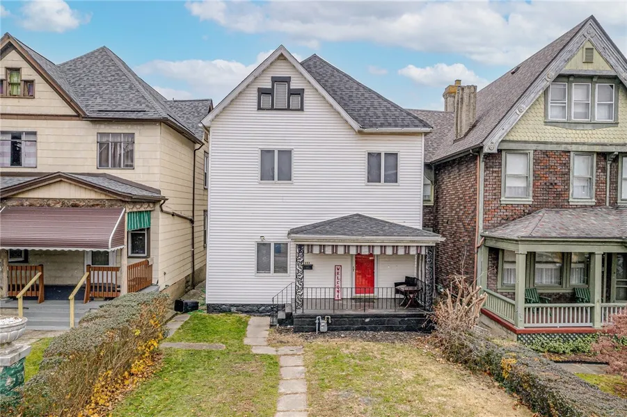HUGE move in ready 5 bedroom beauty with fresh paint, flooring, carpet, sizeable kitchen ready perfect for hosting holiday meals, new roof, new windows on the 3rd floor, 1.5 baths both refreshed, huge deck overlooking the flat & useable back yard. Complete with front porch that will be your favorite place to gather in the summertime. Come make this yours for the new year!