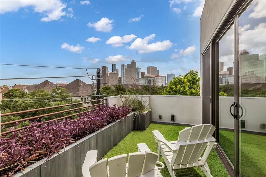 Double Lot!! Modern elegance in the heart of the city. This stunning home offers expansive outdoor living with a rooftop deck featuring unobstructed downtown views, a manicured oversized yard, outdoor kitchen, second-floor balcony, and a covered patio. Designed for comfort and flexibility, the spacious layout includes three bedrooms, a first-floor office, and a bonus room on the fourth floor with a full bath and it's own AC! The gourmet kitchen, equipped with premium Thermador stainless steel appliances, a six-burner gas stove, and ample counter and cabinet space, flows seamlessly into the dining and living areas-ideal for entertaining. A convenient powder room is located on the second floor. Additional highlights include a private driveway and a roomy two-car garage. Just a short walk to local parks, restaurants, bars, and public transit, with quick access to I-45, I-69, I-10, a bus sto...