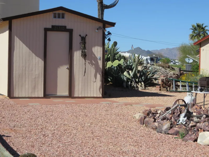 LOCATION, LOCATION, LOCATION! EASY LIVING landscaped lot. Full RV Hook ups.Shed for storage AND is finished with washer dryer hookup inside. Use for storage or an extra 'room'. Or a Great Shop. Nice Corner Location. Great Location! Corner Lot, easy to get to both the Activity Center and the Club House.