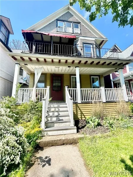 Beautiful double with 2 story owners unit located in the heart of Buffalo's desirable Elmwood Village with gleaming hardwood floors. Tenant occupied lower unit features lovely front porch, entryway with coat closet leading to formal living room boasting gas fireplace, formal dining room with leaded glass window, 2 bedrooms, updated full bath with tub/shower & lovely kitchen with leaded glass pantry cabinet. Light & bright 2 story upper unit features huge living room with gas fireplace, private front porch with awning & wood decking, formal dining room, large bedroom, updated full bath with tub/shower & marble top vanity, totally remodeled kitchen with white cabinets, granite counters, stainless steel appliances, recessed lighting & leaded glass pantry cabinet. Full attic with 2 means of egress boasts 3 finished rooms, and additional full bath with heated tile floor, pedestal sink & walk-...