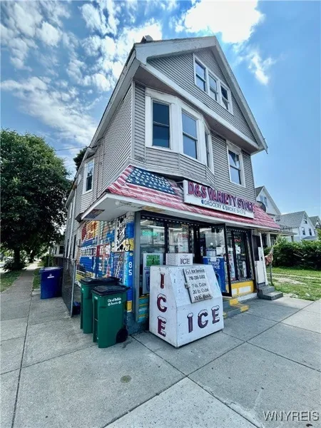 Mixed use 3 unit with off street parking. Lower front is an active convenience store currently rented for $1000/month. Lower rear 1 bed 1 bath apartment with living room & kitchen. 3 bed 1 bath Upper unit features large wood paneled living room with decorative fireplace & formal dining room with hardwood flooring, eat-in kitchen with updated flooring & full bath with tub/shower combo, tile floor & vanity with additional storage. Full attic & basement.