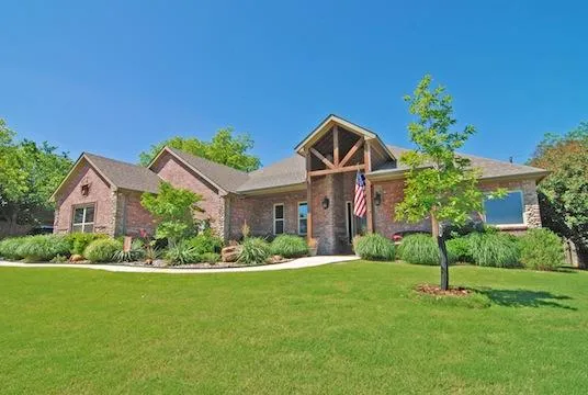 Stunning all most new home in the gated Country Club Community of Pecan Plantation. Brick & pebble stone exterior, beamed ceilings, big open dining-living-kitchen. Beautiful tile work- granite with slate, rustic white oak custom cabinets in kitchen with island, lots of crown moulding,travertine floors in master bath + wonderful screened porch off living. Luxury pool with fountain, wrought iron fencing, backs up to orchard with view. Golf cart garage!