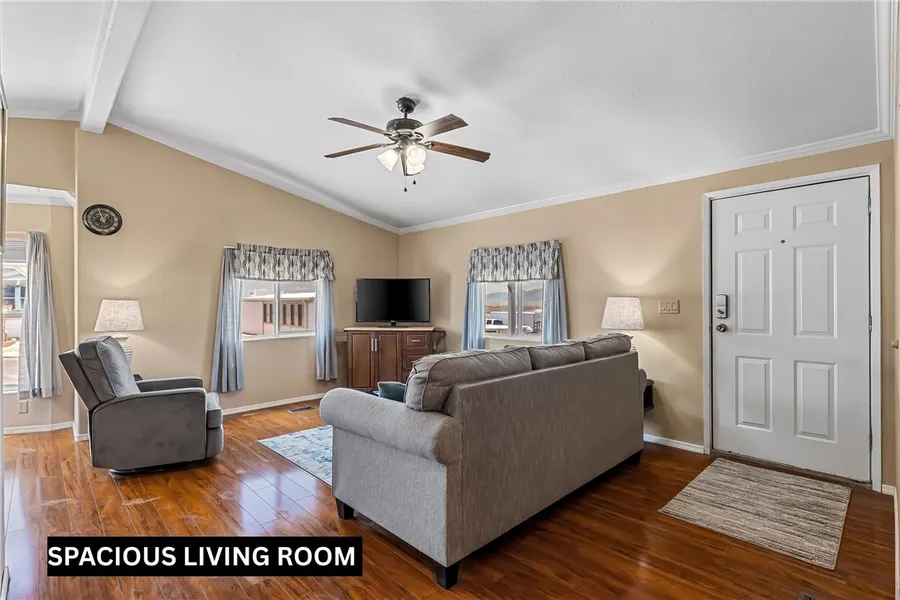 WELL MAINTAINED 2 BEDROOM, 2 BATH HOME... PLUS BONUS ROOM... LOCATED IN THE LONGRIDGE 55+ COMMUNITY. COMING FURNISHED. HOME FEATURES LARGE LIVING ROOM WITH VAULTED CEILINGS. CASUAL DINING AREA WITH PICTURE PERFECT WINDOWS. WELL APPOINTED KITCHEN WITH BEAUTIFUL CHERRY FINISHED CABINETS WITH PULL-OUT SHELVING. UPGRADED APPLIANCES. BIG PRIMARY SUITE WITH WALK-IN CLOSET. PRIMARY BATH HAS PRETTY VANITY AND WALK-IN SHOWER. GOOD SIZED GUEST BEDROOM AND GUEST BATH WITH WALK-IN SHOWER. BONUS ROOM WITH WASHER AND DRYER COULD BE CONVERTED INTO A THIRD BEDROOM (ORIGINAL LAUNDRY HOOK-UPS ARE STILL IN LAUNDRY AREA IN HOME). LARGE SHED / WORKSHOP WITH TWO ENTRANCES. LAND LEASE INCLUDES TRASH, POOL, SPA, CLUBHOUSE, DOG PARK. OWNER OCCUPIED OLNY... NO SHORT OR LONG TERM RENTALS ALLOWED. ONE PET LIMIT AND MUST BE UNDER 25 LBS. MONTHLY LAND LEASE IS $580. JUST A STONE'S THROW FROM LAUGHLIN CASINOS AND THE COLORADO RIVER.