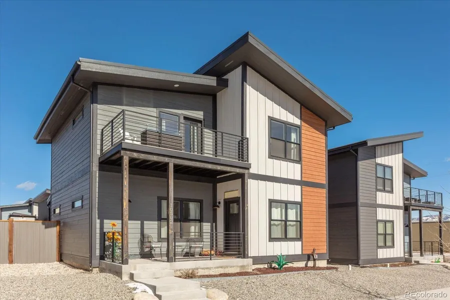 Modern Living - The Harvard floor plan offers 2,048 sq. ft. of thoughtfully designed space with high-end finishes and spacious rooms. The open-concept main level features a stylish kitchen with soft-close cabinets, stainless steel appliances, a large pantry, and an island with bar seating. First floor dining area, family room, living room, half bath, and laundry room. New pellet stove in living room. Upgraded closet organizers in pantry, laundry and primary bedroom. Upstairs, the primary suite boasts an en-suite bath and a private balcony with stunning mountain views. Two additional bedrooms one with an on suite bath and a shared full bath with ample storage and large closets, large office or reading area at the top of the stairs. Detached two-car garage, covered front porch, and a balcony. Low maintenance landscaped front and back yard with new patio and walkway. Located in Quartz at Poncha Meadows, a growing pocket community in Poncha Springs, these precision-built modular homes offer superior quality, energy efficiency, and durability. Close to skiing, dining, shopping, and outdoor recreation, this is the perfect home or investment opportunity. Experience modern mountain living today!