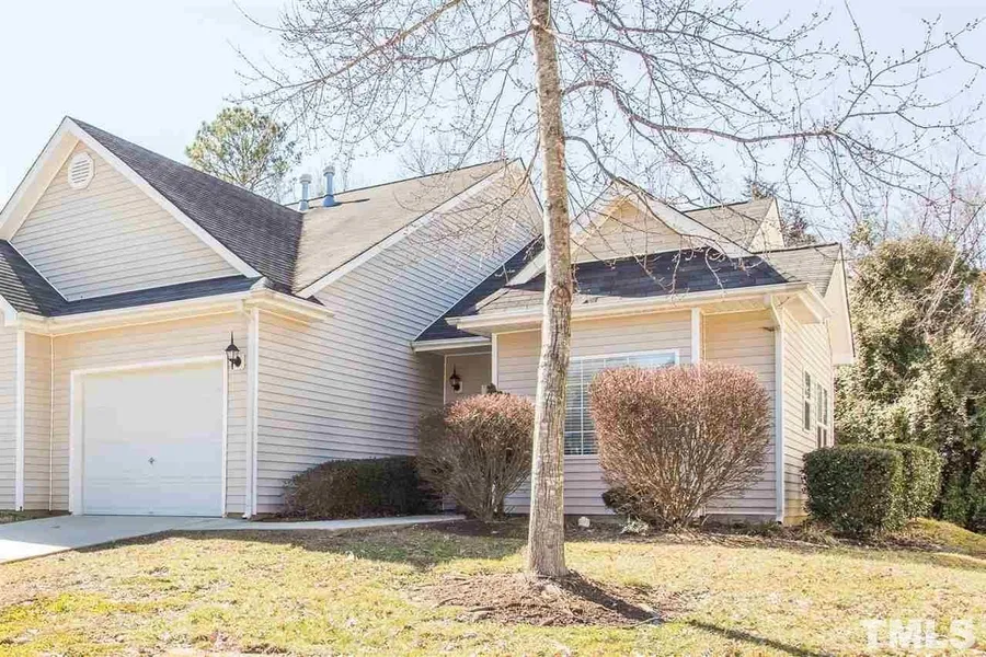 This beautiful one-story, end-unit townhome features two bedrooms and two full baths. Fresh paint and new carpet are throughout the home which also includes newly painted one car garage floor with epoxy. Brand new stainless steel appliances including refrigerator, and washer and dryer are included in the sale. Great North Durham location! Showings start at 12 noon Saturday