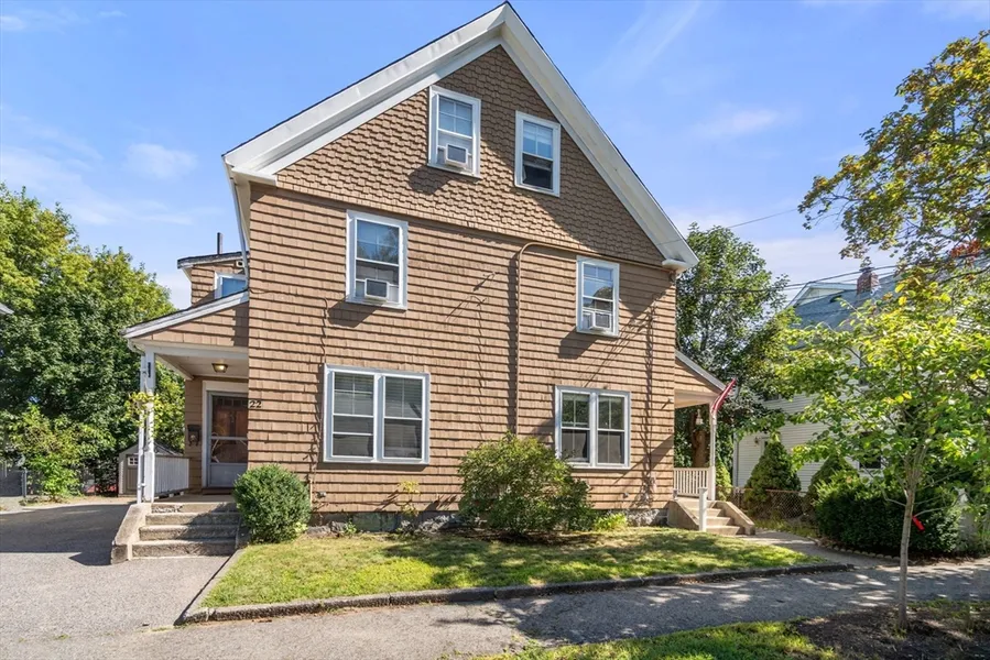 Opportunity knocks! Fantastic side by side two family home situated on a quiet side street in a desirable Newton neighborhood. Both units have the same floor plan. First floor has a spacious eat in kitchen, and a sun-filled living room, 2nd floor has two generous bedrooms and a full bath, 3rd floor has two more bedrooms. Lower level is partially finished with laundry, perfect for extra storage or a home gym. Other amenities include, newer heating system. driveway parking, and two storage sheds. Close walk to stores, shops, schools and public transportation. This could be a great rental property, a potential condo flip or possible tear down. A must see!