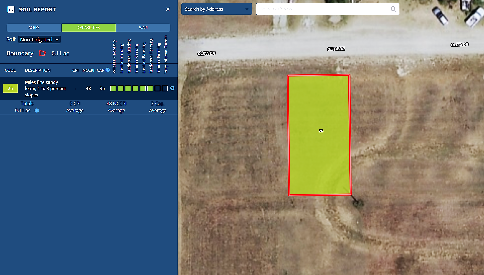 Search for detailed parcel information including; Elevation & Vegetation Maps, Ownership Information, Detailed Parcel Information, Crop History Map, Soil Survey Productivity Data, and more.
