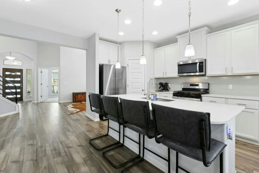 AMAZING PRICE for this nearly new 2 year old home that offers the perfect blend of style, comfort, and community. Located in the sought-after Crosswinds neighborhood, it features a spacious open-concept floorplan designed for modern living. The main level includes a private office with French doors, a first-floor primary suite, and a chef-inspired kitchen that opens to the family room and breakfast area. An extra-large island provides additional dining and entertaining space, complemented by a separate walk-in pantry. A formal dining room (or flexible living space) offers even more versatility. Upstairs, you'll find an oversized bonus/game room and three additional bedrooms, perfect for guests or a growing household. The home has been freshly updated with refreshed landscaping, new paint, and flooring, and the fully fenced yard is ready for play or relaxation. Enjoy resort-style amenities including pickleball courts, swimming pool, picnic and playground areas, dog park, and walking trails. A new elementary school is under construction within walking distance-adding to the already incredible convenience of this location.