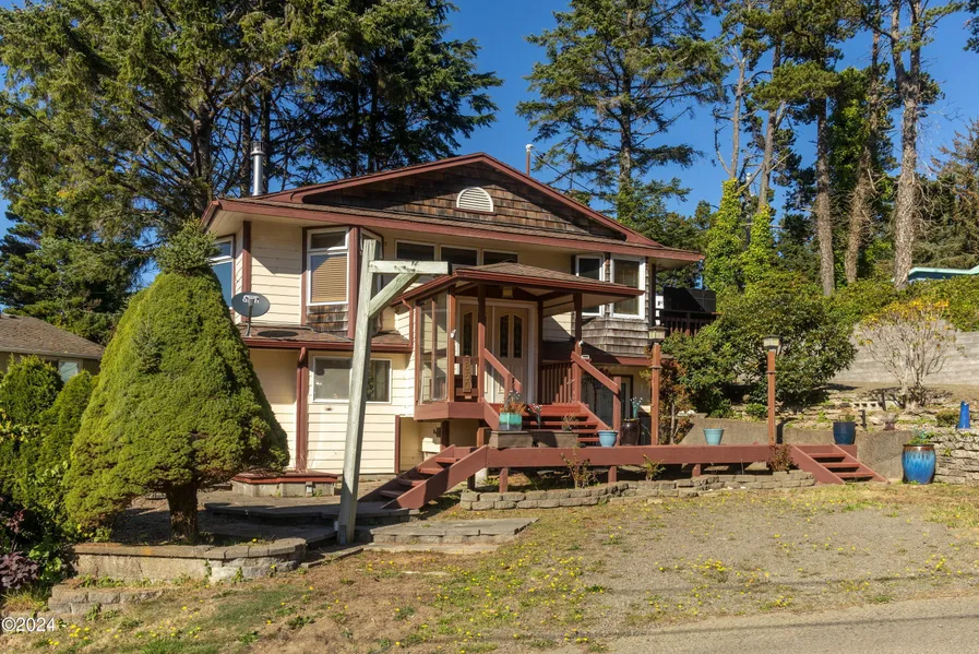 Great beach house for entertaining with peek-a-boo ocean views from Mstr bdrm, liv room, front porch. The house has many updates incl. gourmet kitchen/living room w/knotty pine ceilings and flooring. Remodeled bathrooms, too many to list. Plus, RV parking with 30 amp outlet, Huge storage shed with shelves. House comes with addt tax lot R60809 Buyer to do their own due diligence on uses. lwr lvl can be adu sep entrance.