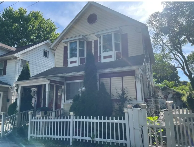 This 4 bedroom 2 full bath Colonial boost of potential. Spacious rooms throughout the home. Beautiful characteristics and plenty of storage. A bonus room in the walk up attic. Two enclosed porches and back yard deck provides great outdoor enjoyment. A fully fenced in yard with 2 car detached garage. Located on a neighborhood street close to bus line. Property is vacant! This is perfect for a family looking to own their own home!