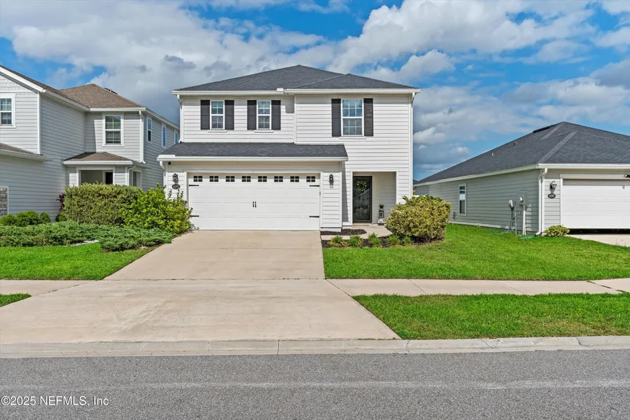Step inside this stylish two-story home with luxury vinyl floors and an open layout perfect for hanging out or hosting. Chic & spacious, ready for your personal touch! The kitchen has granite counters, beautiful cabinets galore, tons of counter space, and a pantry. Chef and entertainers dream! Custom remote control blinds. Downstairs also has a half bath and laundry room with barn door. Upstairs? A big loft, three bedrooms, and a dreamy oversized master suite with a walk-in shower, double quartz sinks, and a massive closet. Out back, enjoy your covered patio and fenced yard. Community fun includes a pool, splash pad, putting green & playground— Close to everything: shops, restaurants, and major highways. **no CDD fees!**