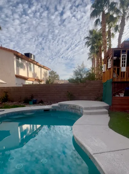 Single-family residence in Henderson, NV offering approx. 2,042 sq ft on a 5,430 sq ft lot. Built in 1993, this 4-bed, 2.5-bath home with attached 2-car garage, private in-ground pool, covered patio, owned solar panels, and desert landscaping. Interior highlights include stainless steel stove/oven, dishwasher, microwave, refrigerator, ceiling fans, dual-pane windows, and a fully-fenced backyard. Newer HVAC units and thermostats. Location highlights (approx.): 0.3 mi to Harriet Treem Elementary; 1.2 mi to Francis H. Cortney Jr. High School and Green Valley High School; 0.7 mi to Whitney Ranch Community Center and trails; 2.5 mi to Galleria at Sunset retail and dining; 0.6 mi to Starbucks; 3.5 mi to Whole Foods Market (Green Valley). Near multiple Henderson parks and open-space amenities. 11 mi to Harry Reid International Airport, 15-20 mi to the Las Vegas Strip, and 14 mi to Allegiant Sta...