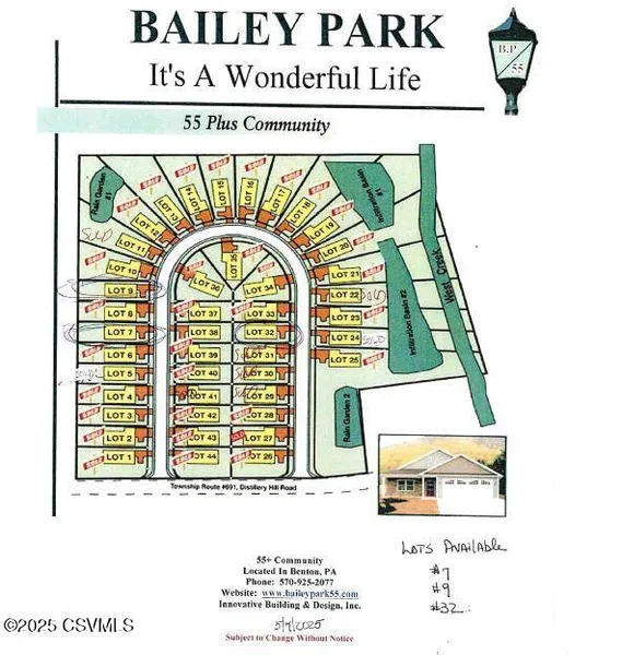 Lot # 32 in Bailey Park...It's a wonderful life! One of only three remaining building lots in this truly unique and very popular 55+ Community in this scenic bucolic setting. There are two options of home designs, a standard design and a hybrid design to build on this lot.