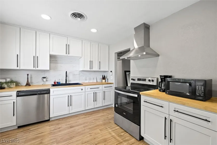 Welcome to this beautifully updated 4-bedroom, 2-bath home, nestled in a quiet, central Las Vegas neighborhood. Completely remodeled from top to bottom, this fully furnished home is move-in ready with all new everythingincluding a new roof, windows, water heater, new A/C, and fresh landscaping. The stylish kitchen stuns with soft-close cabinetry, a custom pantry surround, sleek black hardware, modern marble-inspired backsplash, and a stainless steel appliance packageall centered around a bold single-basin sink. A private carport entry adds extra convenience, along with a nearby attached storage closet. Inside, enjoy all-new drywall, paint (inside and out), recessed lighting, ceiling fans in every room, and neutral wood-look laminate flooring. Two bedrooms feature double closets, one offers a walk-in, and both bathrooms shine with floor-to-ceiling tiled showers, new vanities, and modern f...