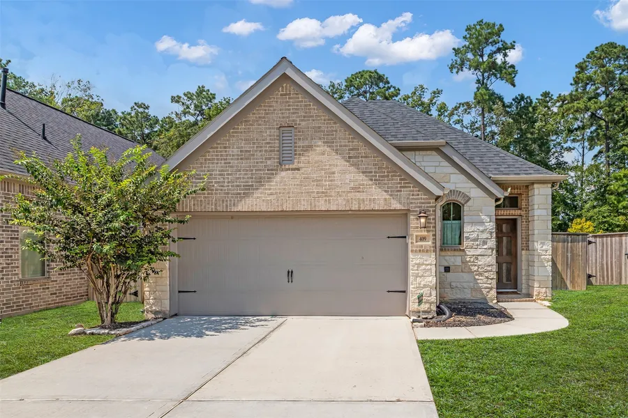 Reduced $30,000 for quick sell! One story Perry Home in desirable Woodforest community with NO BACK NEIGHBORS! Backs to greenspace. Priced to sell quick. Least expensive SFR home with attached garage in Woodforest. 3 Bed/2 Bath in close proximity to Pine Market restaurants and shopping. Long lasting wood-look tile through most of the home. The primary bedroom offers ample space and a private en-suite bathroom. The living & dining area provides a comfortable and inviting space full of natural light, with an open layout that allows for versatile furniture arrangement. The bright kitchen space has an island with breakfast bar. Relax on your extended covered back patio entertaining guests at your next BBQ. Garage is EV charger ready. Forest Island is home to a resort style pool, playground, tennis/pickleball courts, and parks. Enjoy shopping & restaurants in Pine Market. 27-Hole Woodforest G...