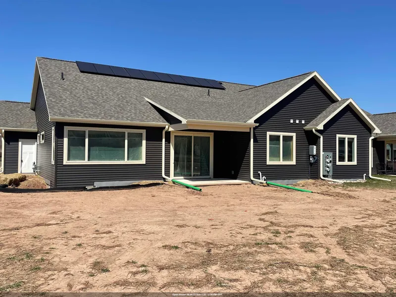 From the curb appeal to the inside finishes, this property is superb inside & out! “Energy Star home” “under focus on Energy Wisconsin new homes Program". GE appliances, Kohler fixtures, farmhouse sink, kitchen with center island, coffered ceiling, fireplace is LED with electric heat, covered porch, wet bar area, golf cart garage stall, hot & cold water in garage with sink, stubbed for future elevator, lower level stubbed for future bath, future bar & has egress windows along with framing for streets of yesteryear from the Sherwood Hardware store & framed for home theater room with industrial ceiling. There is 1.5" foam under the concrete for future basement finishing. Solar panels on roof for low energy costs. Radon mitigation system too. Zero lot line with HOA. Gorgeous floor plan.