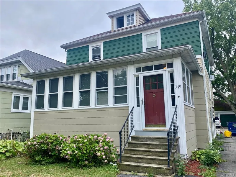 Spacious and nicely updated 4 bedroom, 2 bath (one is in the basement) home with 3 bay garage and lots of off-street parking. Fully applianced kitchen opens to formal dining room. Oversized living room features hardwood flooring and faux fireplace. Bonus flex space in heated front enclosed porch/sunroom. Full updated bathroom. And 4 bedrooms complete the 2nd floor. Walk up attic is great for storage. Furnace 2004, roof (45 yr shingles) 2010. Exterior painted 2024. Interior painted 2025. LR carpet 2025. Parkline yard. Close proximity to UB South and public transportation.