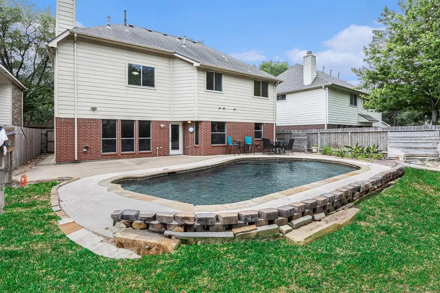 Step into this charming 4-bedroom home, perfectly situated in a peaceful cul-de-sac within a gated community. Featuring a soaring entryway and an open-concept layout, this home blends comfort with functionality. Major updates include a newer roof (2019), energy-efficient A/C (2015), tankless water heater, and a generator for year-round peace of mind and storm preparedness. The spacious backyard is a true retreat with a sparkling pool, and expansive patio-ideal for entertaining or unwinding. Backing to a community sidewalk and greenbelt, you'll love the serene views and open feeling. Generously sized bedrooms offer versatility for guests, a home office, or a playroom. Conveniently located just minutes from major highways, top-rated schools, shopping, dining, and entertainment. With a desirable layout, peaceful setting, and your finishing touches, this home will serve you well for years!