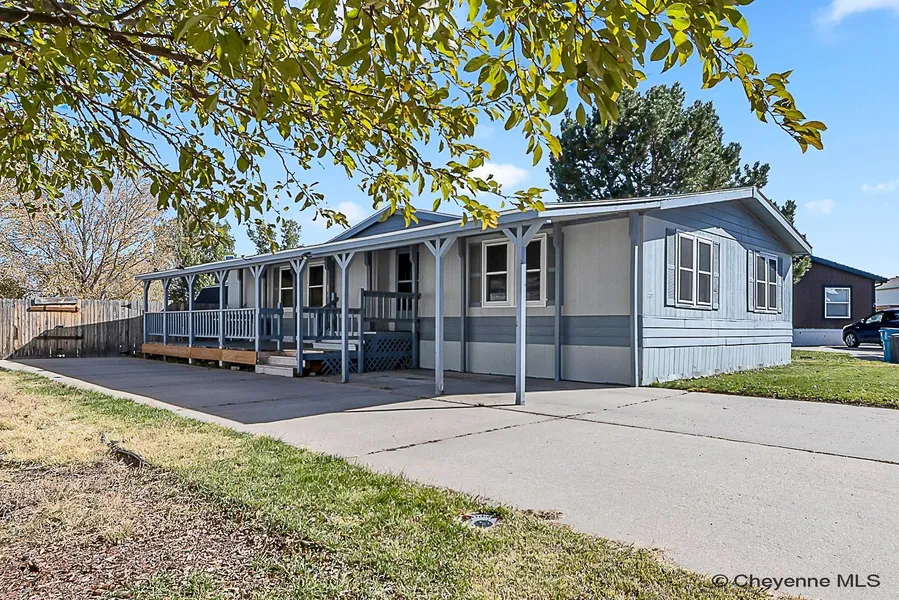Here's a rare opportunity to own a double wide home within a mobile home park‹”one of only two in the entire community that sits on its own land, eliminating lot rent and HOA fees. This inviting home boasts a spacious covered front porch, ideal for relaxing or entertaining. The fenced backyard offers privacy and ample space for outdoor enjoyment, complete with two storage sheds. A large driveway and private parking pad - located in the fenced backyard - provide convenient and private parking options. Priced affordably, this property offers a fantastic chance to personalize and upgrade over time. Don't miss out on the opportunity to own a unique home with greater independence and potential savings!