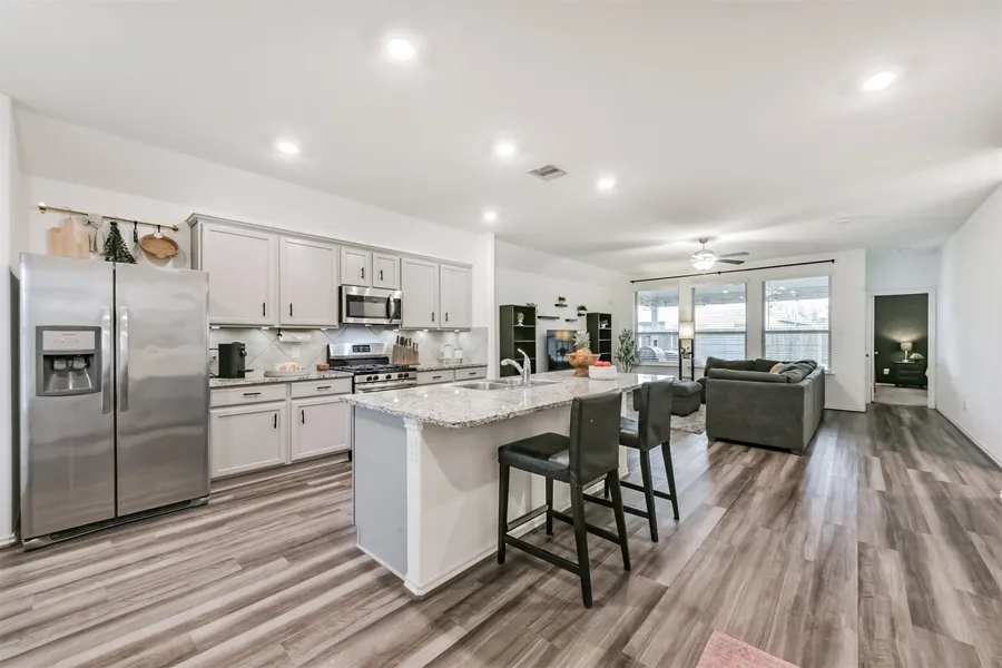 Welcome to this charming Lennar 3 bedroom and 2 bath home in the peaceful community of Tavola, just minutes from shopping, dining, and major highways. Built for comfort and modern living, this home has an open concept layout that seamlessly connects the kitchen, dining, and family rooms - making it perfect for everyday living and entertaining. The awesome island kitchen features 36" cabinets, granit countertops, and stainless steel appliances. The spacious primary offers a private retreat with a fabulous ensuite and generous walk in closet. With 2 more bedrooms and another bath, there is room for the family, guests or a home office. Step onto your oversized covered patio and large backyard-perfect for family gatherings. Energy efficient with 16 seer HVAC system and radiant barrier roof decking. The home is a wi-fi certified smart home as well. Come see this charming home and you will wan...