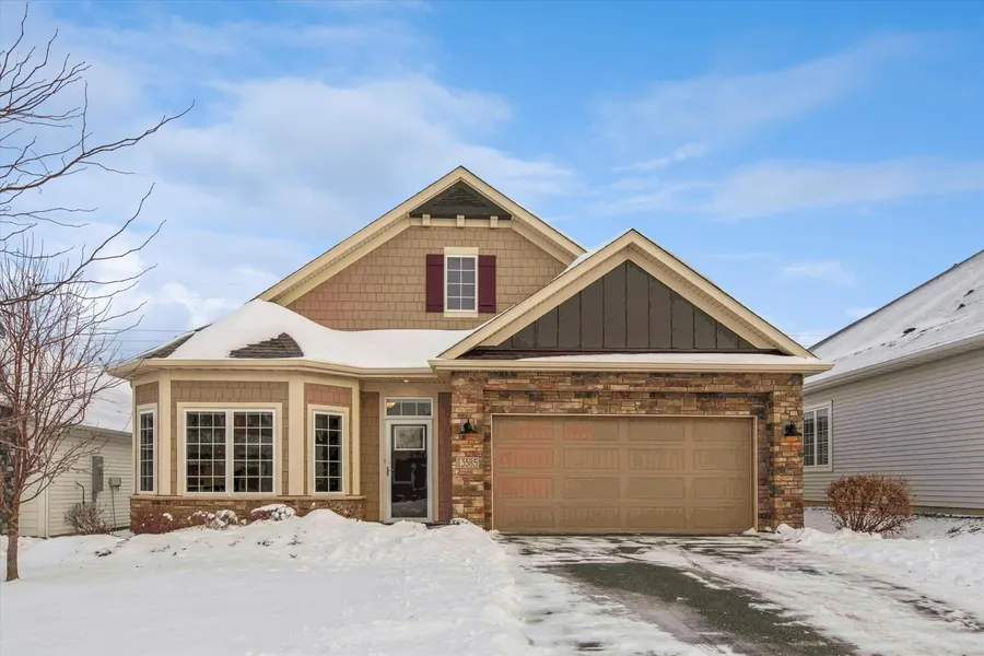 Enjoy nearly new construction and effortless one-level living in the desirable Haven Ridge community. Experience the comfort of a single-family home while lawn care and snow removal are handled for you-making everyday living truly carefree. This immaculate, move-in-ready home features 9-foot ceilings throughout and a stunning, thoughtfully designed kitchen that is sure to impress. Highlights include abundant tall cabinetry, subway tile backsplash, a walk-in pantry, double wall ovens, an oversized center island, granite countertops, and stainless-steel appliances-perfect for both daily living and entertaining. A bright front den or home office welcomes you with beautiful natural light. The open family room offers a cozy stone gas fireplace and flows seamlessly into the dining area and inviting sunroom. The private owner's suite provides a relaxing retreat with a large walk-in closet and a spacious ensuite bath featuring dual vanities and a tiled walk-in shower. Additional features include custom blinds throughout (2019), bonus upper-level storage, and a large patio overlooking a peaceful walking path-ideal for enjoying the outdoors. Located close to trails, Lower Prior Lake, Sand Point Beach Park, shopping, restaurants, coffee shops, and the new Canterbury entertainment district with amphitheater. Convenient access to Highway 169 and I-35W completes this exceptional offering.