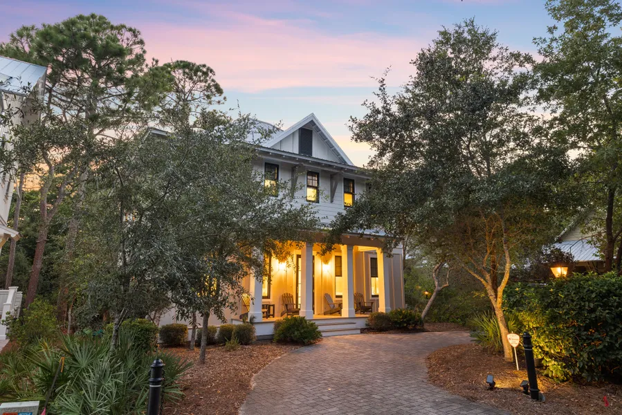 Ideally located for enjoying the best of 30A living, this impressive fully furnished home enjoys a prime location in the gated community of Hammocks of Seagrove. The square columned entrance porch sets the tone of this imposing residence, which blends statement architecture with delightful areas for relaxing. Rich hardwood flooring and hewn-wood beams add to the sense of opulence while the pebbledash fire surround and shiplap walls introduce an element of rustic charm. The open floor plan delivers a series of carefully curated spaces for socializing, dining and relaxing.