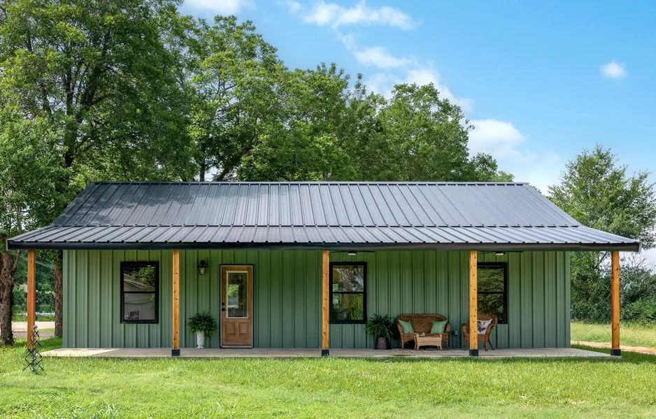 1,260 sqft. - 3/2 barndominium and detached 20x24 covered carport with 120 sqft. of enclosed storage. Featuring earthy finishes inside and out, this homey ranch-style house invites you to step onto the welcoming 42x10 covered front porch thats just right for a couple of rocking chairs to enjoy a cup of early-morning coffee or sitting areas great for late evening visits. The front door opens right into a brightly-lit, open-concept Living Room with vaulted ceilings and an Eat-In Kitchen with; custom-wood cabinetry, a huge walk-in pantry, a double-door laundry closet with on-demand water heater, new stainless appliances, decorative lighting and a back door that leads out onto a nicely-shaded, back-yard area and a carport thats so nice, youre tempted to park your car elsewhere because its perfect for exp...