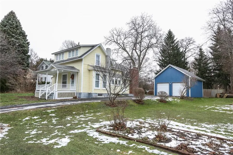 Adorable Cape Cod in Brockport. Offering 3 good sized bedrooms, all with new carpet. Master bedroom has a large walk in closet. Formal dining room with beautiful inlaid hardwood floor and built-in cabinetry. This home benefits from a formal living room and a family room, the latter with a brick fireplace. Front porch for warm summer evenings. The newer large 2-car garage/barn offers great storage space. The French door from the family room opens on to the back deck overlooking the fully fenced back yard. Newer furnace and some newer windows.