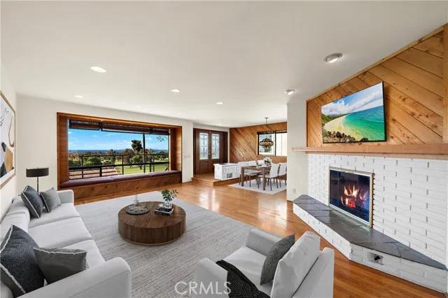Welcome to your serene coastal retreat with a mid-century modern flair! Perfectly situated on a street to street lot overlooking the San Clemente Municipal Golf Course, this charming 3-bedroom + wine cellar/game room, 3-bathroom home offers a rare combination of privacy, character, and stunning panoramic ocean and golf course views. Step inside to discover warm wood finishes, an open-concept living and dining area, and a window bench perfectly positioned to capture breathtaking vistas of the ocean and lush green golf course. With natural light pouring in through your leaded glass double entry doors & expansive windows, the interior feels bright, airy, and welcoming. The kitchen and bathrooms retain their original charm with custom wood cabinetry and vintage tilework, creating a cozy, nostalgic feel that blends seamlessly with the modern coastal setting. Features include recessed lighting...