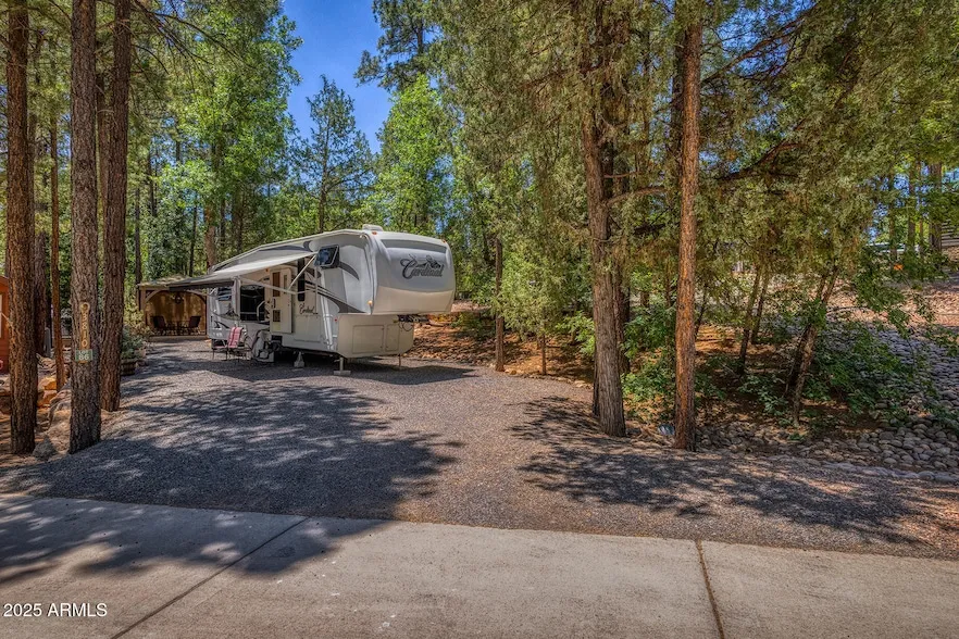 Discover the perfect getaway spot with this beautifully landscaped corner lot nestled in the towering pines of the highly desirable White Mountain Vacation Village. Situated next to the greenbelt for extra privacy and forest views, making it the perfect backdrop for relaxation in nature. Enjoy the convenience of dual parking areas, ideal for hosting guests and parking your RV. A gazebo on a concrete slab creates the perfect space for outdoor dining or lounging, while the storage shed - equipped with a refrigerator and workbench - adds both function and flexibility. Located within a vibrant community, you'll have access to a clubhouse, laundry facilities, and well-maintained roads. The HOA covers water, sewer, trash, and road maintenance, making for easy, stress-free ownership. Whether you're a full-timer or weekend warrior, this charming lot has everything you need to start living the mountain lifestyle. The RV is For Sale outside of escrow, ask Listing Agent for more information.
