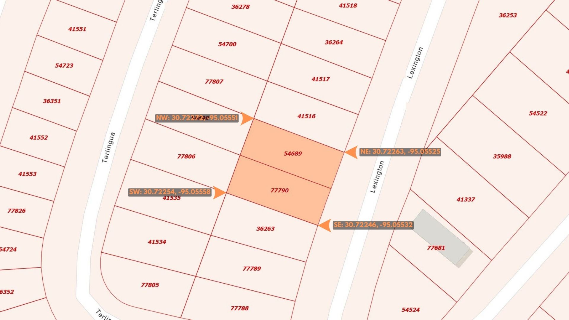 Northwest Corner: 30.72272, -95.05551