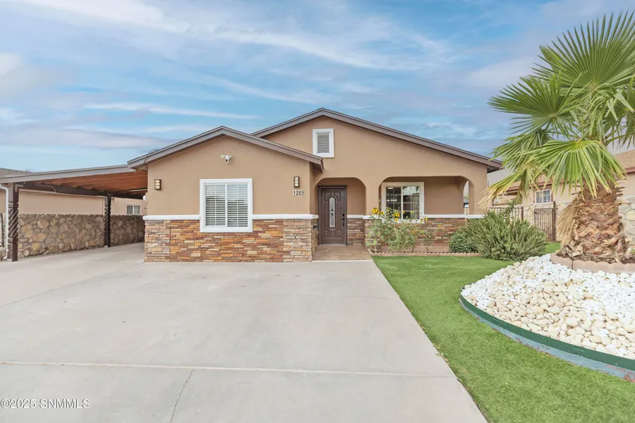 Home listed just under recent appraisal! Luxury meets modern comfort at 1205 Aero Ln--your poolside retreat just beyond the city. This 4-bed, 3-bath home offers 1,603 sqft of heated living space plus 430+ sqft of covered patio for seamless indoor-outdoor living. White tile floors flow throughout, complementing a bold designer kitchen with blue cabinets, gold hardware, and waterfall-edge marble counters. The living room features a stone-accented TV wall and remote-controlled ceiling fan/light, while the dining area includes a doggie door leading to a side-yard dog run--paired with another in the primary suite. Step into a backyard oasis featuring a covered patio furnished with lounge seating, table, chairs, and stylish decor. The outdoor kitchen includes a built-in gas grill, wine cooler, and granite counters--perfect for entertaining. Cool off in the 280 sq ft swimming pool with a controllable fountain or unwind in the spa that overflows into the pool.
