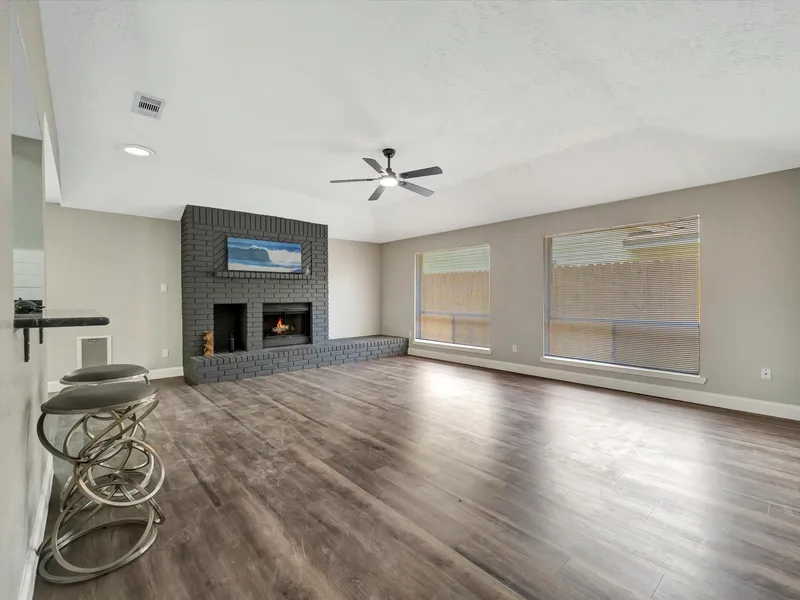 This charming and updated three-bedroom, two-bathroom home in the Meadow Bend Subdivision of League City, TX, offers a delightful living experience. Step inside and discover a spacious living room featuring, vaulted ceilings, a cozy wood-burning fireplace, modern LED lighting, ceiling fans for comfort. The kitchen is equipped with, granite countertops, updated appliances, double stainless steel sink and a beautiful pantry. Both bathrooms have been tastefully updated. The primary bath includes a new vanity with a quartz countertop and a tiled walk-in shower with a glass door. The guest bathroom features a new vanity with a quartz countertop and a new tub with a tile surround. The home also offers a spacious backyard, perfect for entertaining, complete with a nice patio and two storage sheds or shops for your storage needs. This home, located in a quiet and established neighborhood, is a f...