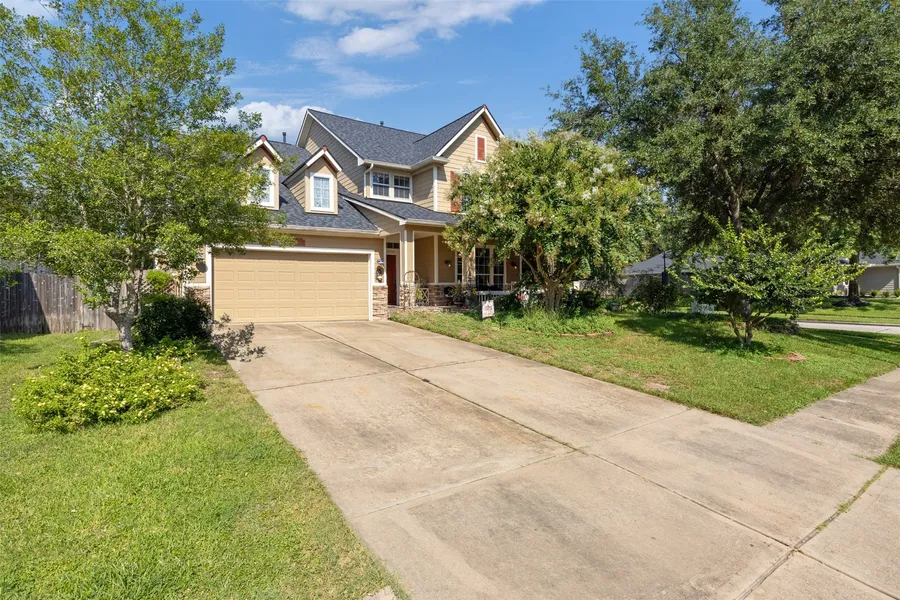 Charming 2-story David Weekley home nestled on a corner lot with mature trees in the heart of Coles Crossing! This home boasts a recent roof in 2024, 4 bedrooms, 2.5 baths and 2 car garage. Open the door to a fabulous home featuring hardwood flooring downstairs, along with tile in kitchen and a cozy floor plan! Great for entertaining with both formals! Work from home? A study awaits you! Many custom additions! Family room freshly painted in 2023 w/gas fireplace for those cool winter evenings! Split plan w/primary bedroom down, 3 secondary beds w/full bath up! Floored attic w/Texas Basement along with a/custom shed in the backyard for all your storage needs! Location in a great location with quick access to 290/249 and Grand Parkway near area dining & shopping! Great CFISD Schools!
