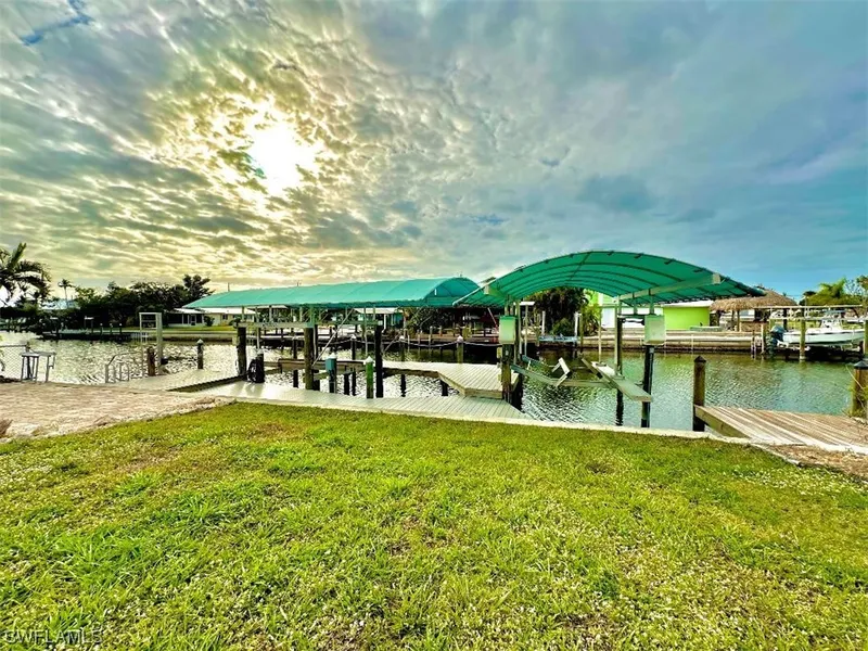 Boaters, your perfect island getaway located in desirable St. James City (Lee County). Cleared lot is situated on a canal with a seawall. Direct access to San Carlos Bay, Gulf of Mexico, Sanibel, Captiva and Ft. Myers Beach. Lot comes with a wraparound deck with two boat lifts 16,000 lbs and 8,000 lbs as well as a kayak lift. Lifts are canopied to protect your vessel(s). Composite dock also has a fish cleaning station. Lifts have remotes with electricity and water. Lot is located on a quiet dead end cul-de-sac street. Build your dream home and start boating while you wait for it to be completed.