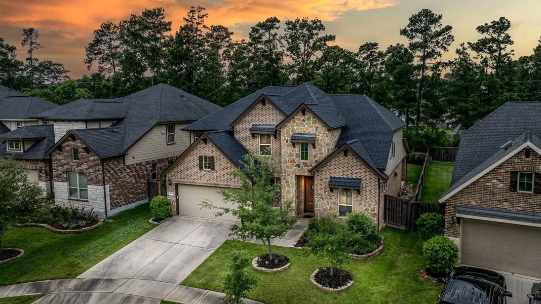 Woodtrace is located just north of Tomball off 249 in Montgomery County. This Lennar home has an ideal location on a cul-de-sac street with no backyard neighbors. Brick and stone facade, real wood door and covered porch greets you home. Study is a large size with gleaming wood floors which can be found throughout much of the first floor. The open floor plan has soaring two story ceilings in the living anchored by a cozy fireplace. Island kitchen has seating at the granite island, stainless appliances - fridge included, gas cooktop and other upgrades. Nearby dining area is framed by windows with backyard views. Primary bedroom downstairs features a large tub, two granite vanities, roomy walk-in shower and walk-in closet. Upstairs offers a gameroom, two full baths, and three bedrooms for the perfect floor plan. Backyard highlights include a treeline behind/no backyard neighbors, spacious c...