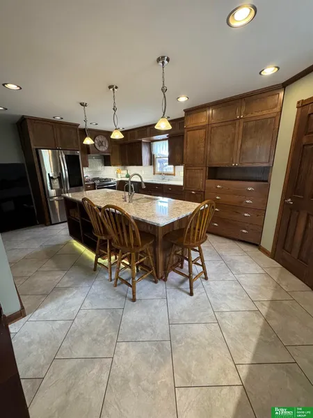 PRE-INSPECTED! MUST SEE! Greeted by elegant bamboo flooring in the living room and dining room leads to the kitchen which has custom cabinetry featuring quartz counters, a walk-in pantry, gas range, and a large center island with a prep sink! Upstairs, the 4 bedrooms boast of refinished beautiful original oak floor with convenient hall laundry area. Downstairs, the finished basement provides added living space, as well as extra storage. Outside enjoy the beauty of professional landscaping while sitting under the covered deck or near the fire pit! Additionally, this home has a new roof with high resistant shingles installed in September 2024. Located just minutes from Offutt Air Force Base, and within walking distance to schools, pride of ownership is obvious. Seller is a licensed Realtor and holds equity. AMA