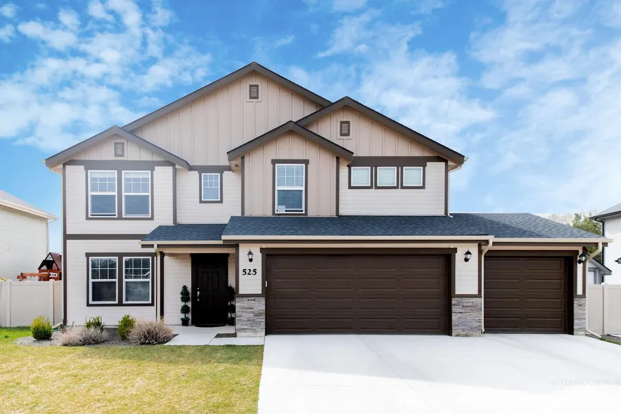 This gorgeous two-story home with 4 car garage is located in a quiet Silkwood subdivision in Star. Upon entry you are greeted by custom cabinetry and a beautiful office/play area. Giant open concept kitchen with full tile backsplash has loads of counter space and storage, featuring stainless steel appliances, large island, breakfast bar and walk-in pantry. It is open to great room and a casual but cozy dining area. Upon garage entry you will find yourself in a big mudroom. The second floor is highlighted by impressive master suit offering spacious walk-in closet, large tub and storage shelves, followed by additional 4 bedrooms. This home also features Dechlorination filter, water softener, Reverse osmosis filter and a central vacuum system. Landscaped front yard. Large landscaped fully fenced backyard with fruit trees and gardening area, irrigation water for sprinkles and no rear neighbors. Beautiful mountain views from the windows. Located minutes away from parks, restaurants, grocery shopping, banking, etc.