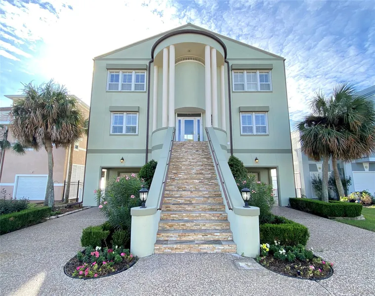 This lovely two-story has breathtaking views of Galveston Bay, Moody Gardens, and the Galveston skyline from the living room and primary bedroom located on main floor. The main living room has a fireplace and wall of windows that needs to be seen to be believed. It has three to four generous bedrooms & 2 1/2 half bathrooms within the 3,238 square feet of living space. The bedrooms have walk-in closets, and the bathrooms are well appointed with spa-like fixtures. The home boasts hardwoods and power blinds on the main floor and carpet upstairs. There is an interior staircase and an elevator. The chef's kitchen has a stainless-steel farmhouse sink, Wolfe induction stove along with plenty of storage and countertop space. On the main floor there is a utility room and a half bath for convenience. The main floor primary bedroom has marble floors and a large en suite with great closet space. The...
