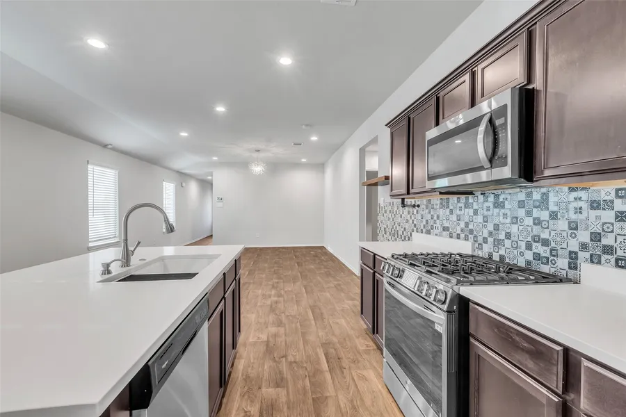 Why wait for new construction when this 2021 home is better than new? This beautifully maintained 3-bedroom, 2-bath property sits on a spacious corner lot in Breckenridge Forest and offers an extended covered patio, low-maintenance artificial turf, custom storage shed, and gas lines for a generator and gas dryer. Inside, enjoy an open layout with a Talavera tile backsplash, quartz counters, stainless appliances, walk-in pantry, and upgraded flooring with no carpet. The primary suite features dual vanities, a tiled tub/shower, and a walk-in closet. Additional upgrades include fresh interior paint, full home water filtration system, and smart security features. Conveniently located minutes from neighborhood parks, pool, Hardy Toll Road, Hwy 99, and I-45. Move-in ready and designed for modern living.