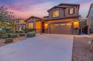 Come see this stunning move-in ready 2-story home in the desirable Anaverde community. This home shows true pride in ownership! Built in 2016 with 2,539 sq ft of living space, this property features 2 master suites one on each level, for a total of 4 bedrooms, 3 bathrooms (+Office for total of 5 bedrooms). With fully paid SOLAR. On the main level you will find the secondary master suite with bathroom, dual vanity, and large walk-in closet. Also located downstairs is an office that could be used as an additional bedroom, powder room, open kitchen with walk-in pantry, granite counter tops, stainless steel appliances, and center island with breakfast area. Open concept dining and family room, recessed lighting and ceiling fans. Upstairs is the spacious loft, laundry room, 3 additional bedrooms and a full bath, plus the main master suite with master bath featuring dual vanities and large walk-in closet, providing a relaxing private retreat. Enjoy this amazing backyard year-round with great outdoor lighting, ceiling fans, covered patio, built-in BBQ, block and metal fencing. With professional front and rear landscaping. Two-car attached garage. This gorgeous home is a must see!