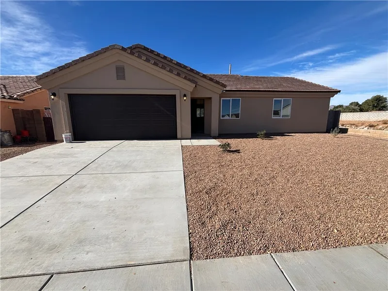 New construction completed and move-in ready. Model of 1150 square foot new 2x6 construction home with synthetic stucco and tile roof with double-pane windows. The front yard. The home is set up with electric heating system, range, water-heater and electric cooling system that will keep you comfortable all year around. The 3 bedrooms 2 bathrooms 2 car garage is perfect in the inside, the kitchen has granite counter tops and stainless steel stove, microwave and dishwasher. The open floor plan is perfect for entertaining guests and create a wonderful open space. The home is accented with nickel fixtures in both lighting and plumbing. Tile is placed through the living room, kitchen, bathrooms & hallway, carpet are installed in all 3 bedrooms for a more elegant look, walk- in shower in master bathroom, walk-in closet in master bedroom and in the second guest bedroom. 2 year Builder Warranty.