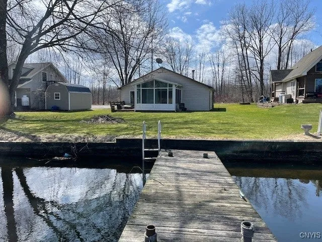 Welcome to your private escape. Located on the beautiful Oneida River, this four-season home boasts 50 feet of prime river frontage, providing you with spectacular water views and direct access to one of the most scenic waterways in the region. From your front yard, you’ll have the freedom to explore the river by boat or relax and watch the world go by, making this home the perfect spot to start your next adventure. The true highlight of this home is its incredible 50-foot of river frontage. With direct access to the water, you can enjoy kayaking, boating, fishing, or simply relaxing by the river’s edge. Whether you’re an avid water enthusiast or someone who simply enjoys being near the water, this property allows you to experience riverfront living at its best. The home offers a spacious layout with two generously sized bedrooms, providing ample space for rest and relaxation. While the interior is in need of some refreshing updates, it provides the perfect canvas for those with a vision. The bathroom is large and has a walk-in shower. The living area is large, with a vision, it can be made to be inviting, perfect for both entertaining guests and enjoying quiet evenings with family. The open design allows for a seamless flow between spaces, creating a welcoming atmosphere. Whether you dream of updating the kitchen, refreshing the bathrooms, or adding modern touches throughout, this home offers the ideal foundation to make those ideas come to life. One of the standout features of this property is the beautiful three-season porch. This space is an oasis where you can unwind and enjoy breathtaking river views in comfort. Selling As-IS. Seller will not pay for New Survey (see survey attached). The piano & electric fireplace stay. Dock & row boat also stays. Also listed as a camp/lot in the MLS # S1596874