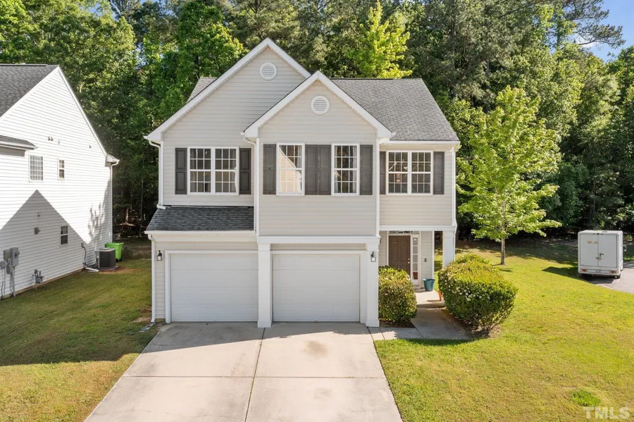 Beautiful 3 bed, 2.5 bath home in Castleberry subdivision. On corner lot at end of cul-de-sac. Wooded buffer zone in back provides green and privacy. Additional loft space upstairs is perfect for home office or entertainment. Large master bedroom overlooks private wooded lot, and features walk-in closet, en-suite bath with double vanity, walk-in shower, and separate garden tub. Spacious living area downstairs with gas logs, a separate dining room, and lots of natural light. Dedicated laundry room up. Two-car garage with separate bays. Patios in front and rear. Conveniently located: minutes from Capital Boulevard and 540. Close to shopping and dining. 10 minutes to Wake Med North. 12 miles to the heart of downtown Raleigh. This can't be beat!
