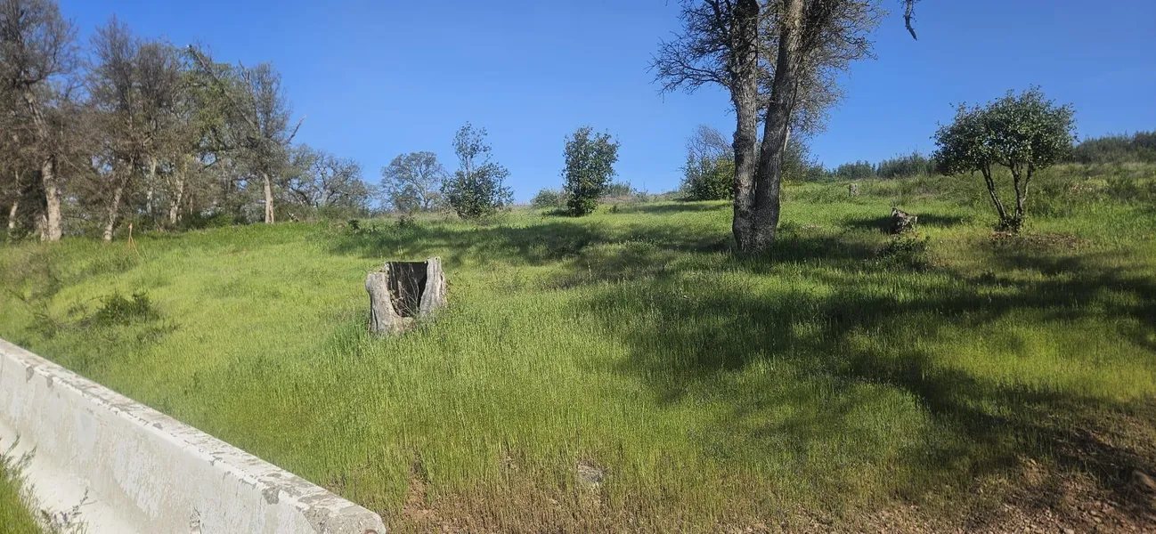 Slightly sloped spacious residential lot located on paved road across the street from vineyards with utilities available for connection.