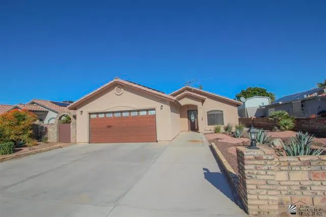 Enjoy the vibrant foothills and a fully PAID OFF solar system with accepted offer in this 3 bedroom and 2 bathroom home! Drive up to view meticulous landscape, a large concrete driveway and 2 car garage to keep the cars cool. The home is surrounded by beautiful brick fencing and the gorgeous landscape spans into the large backyard featuring a covered patio, storage shed, and plenty of yard space! Inside is stunning with features including vaulted ceilings, tile throughout excluding the guest rooms, fresh paint, and more! Entertain in the large living room that leads to a kitchen with lots of cabinet space, stainless steel appliances, movable kitchen island, and dining room! The primary bedroom gives plenty of space and has a full en suite bathroom! Schedule your private showing today!!