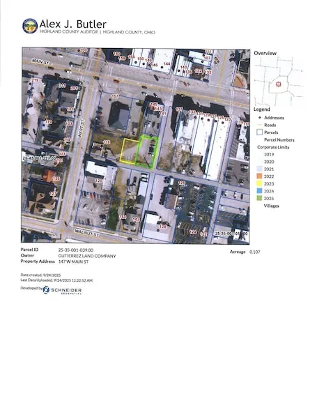 Research Parcel InformationRte. 50 into Hillsboro, which becomes W. Main St.,take S. West St. to alley behind bakery, lots are on the left corner