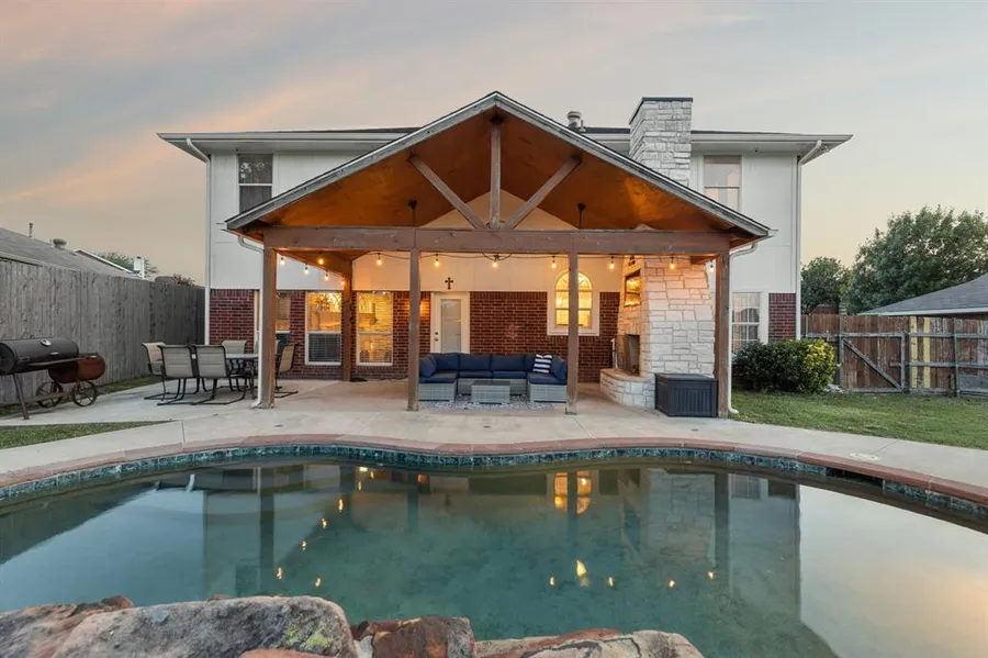 This charming two-story 4 bedroom, 3 bath house is perfect for those who love to entertain. The outdoor oasis includes a refreshing pool, an oversized covered patio, & outdoor fireplace, perfect for gathering with friends & family. You can access a full bath from the backyard, great for anyone swimming. The updated kitchen is the heart of the home, with a formal dining area & breakfast nook nearby. The living room has a stunning cast stone fireplace, making it the perfect spot to cozy up on cool evenings. The main living room has a beautiful stack stone accent wall. With two living areas, there is plenty of room for everyone to spread out & relax. The laundry room has a sink & the oversized stackable washer and dryer that will convey with acceptable offer as well as the outdoor TV. This home backs up to a park, offering easy access to green space & outdoor activities. Numerous updates th...