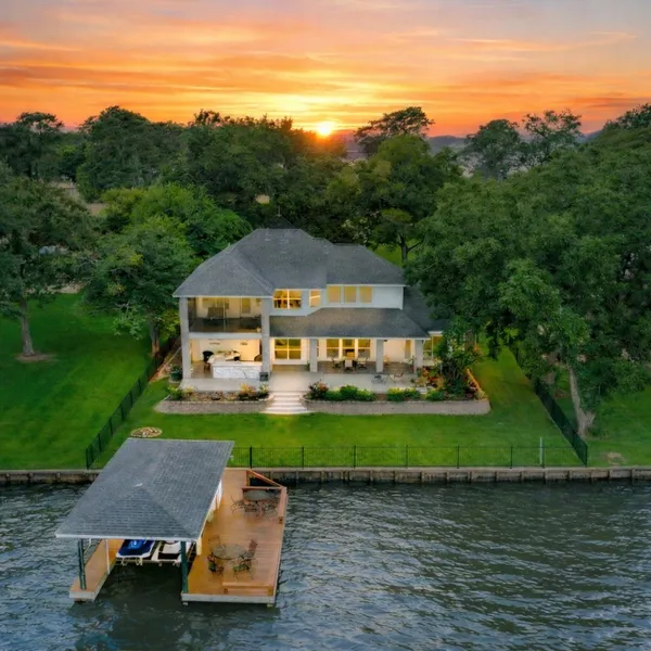 Click Virtual Tour Link Above to see Breathtaking views, where every day feels like a vacation! Beautifully designed, custom home features a dramatic 2-story entry & family room, soaring ceilings & walls of windows that flood the open-concept kitchen, living & dining areas with natural light. Main floor offers 2/3 BRs & 2 full baths, including primary suite with jetted tub & dual closets. Upstairs living quarters: BR, full bath, kitchenette & screened-in balcony overlooking the lake (in-law suite). Storage space over garage: floored & vented for climate control. Entertain with full outdoor kitchen, large covered patio, private dock (4 lifts, enclosed storage) & new 90' bulkhead. 2.5 car garage designer epoxy floors & workshop. Fully fenced yard with plenty of grass. Just steps from neighborhood pool, grill, swings & courts-nearby community boat ramp. GENERATOR & VACUUM SYSTEM. Some photo...